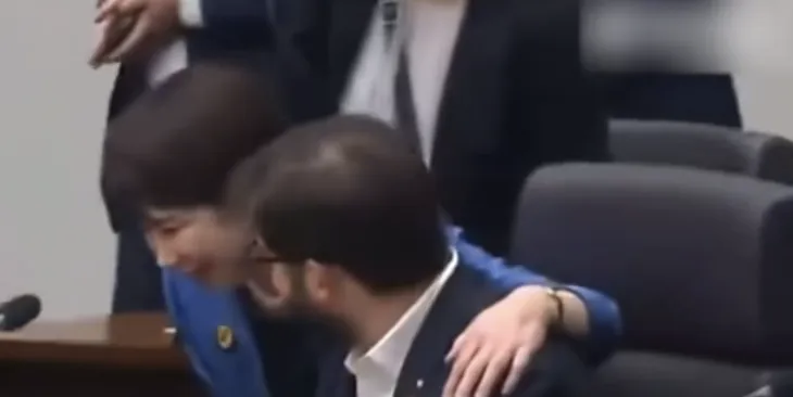 高市早苗对着韩国国旗鞠躬图:视频截屏